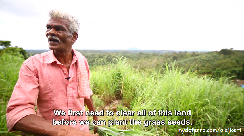 Emily Wright - doTERRA alapító: Nyolc kilométert gyalogoltunk hegynek felfelé, jelenleg 2400 méter magasan vagyunk. Ez egy másik terület ahol a helyiek citromfüvet aratnak. Nagyjából 5-7 napjukba telik mire ezt a 100 holdnyi ültetvényt betakarítják.